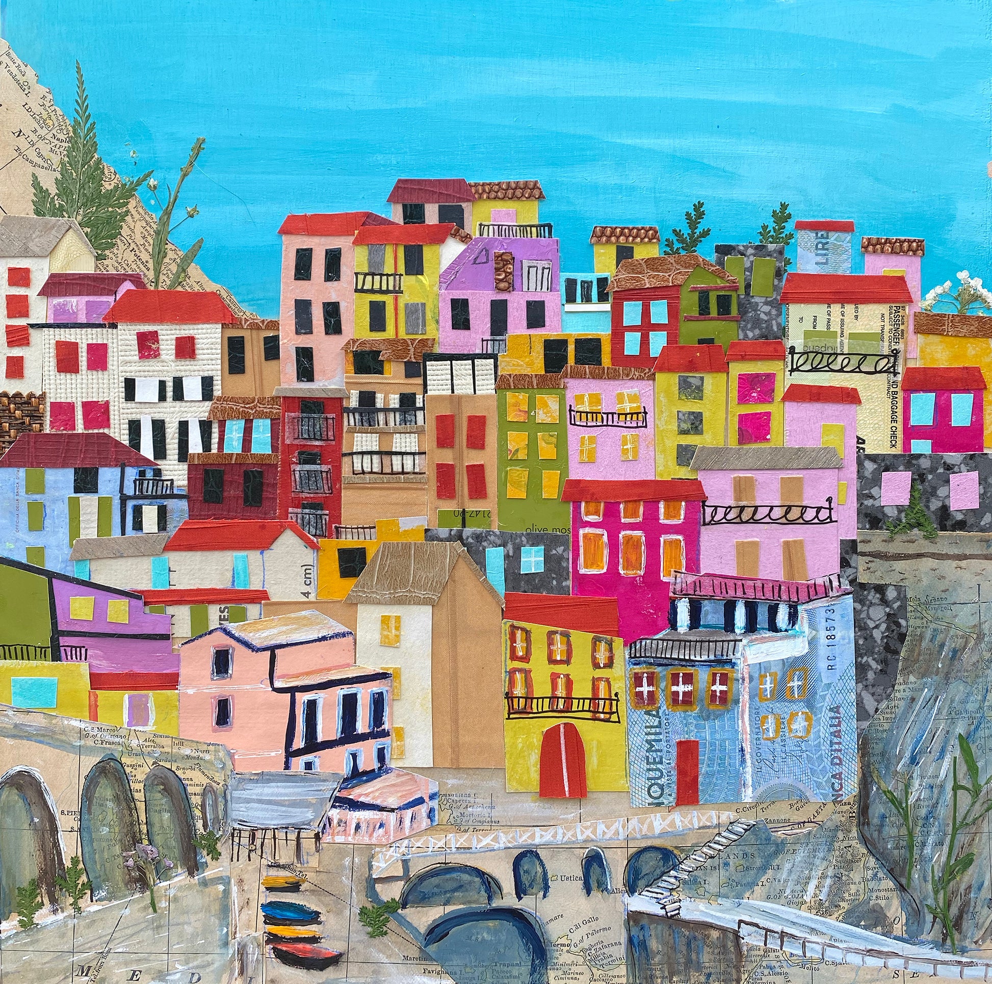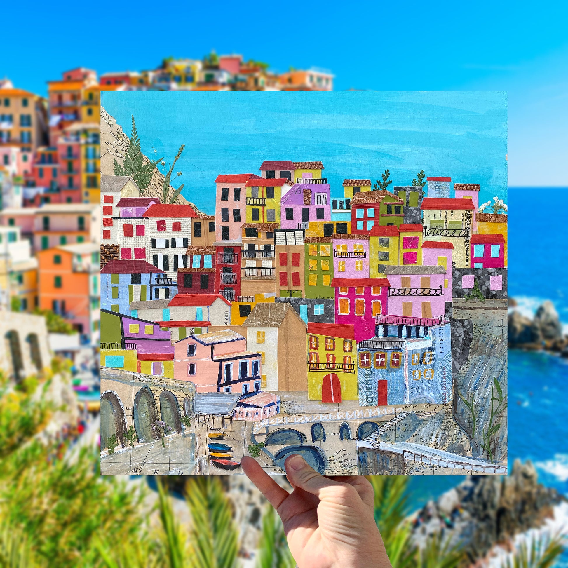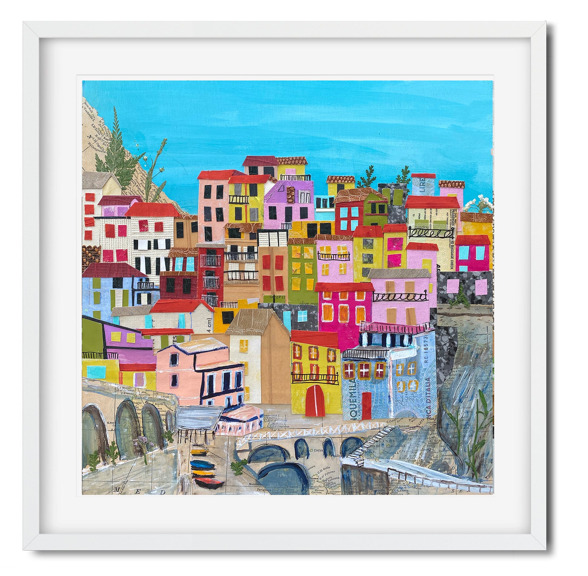 Take a trip to Italy with this colorful collage print. Grab some pasta and vino and be transported to the vibrant and colorful country.