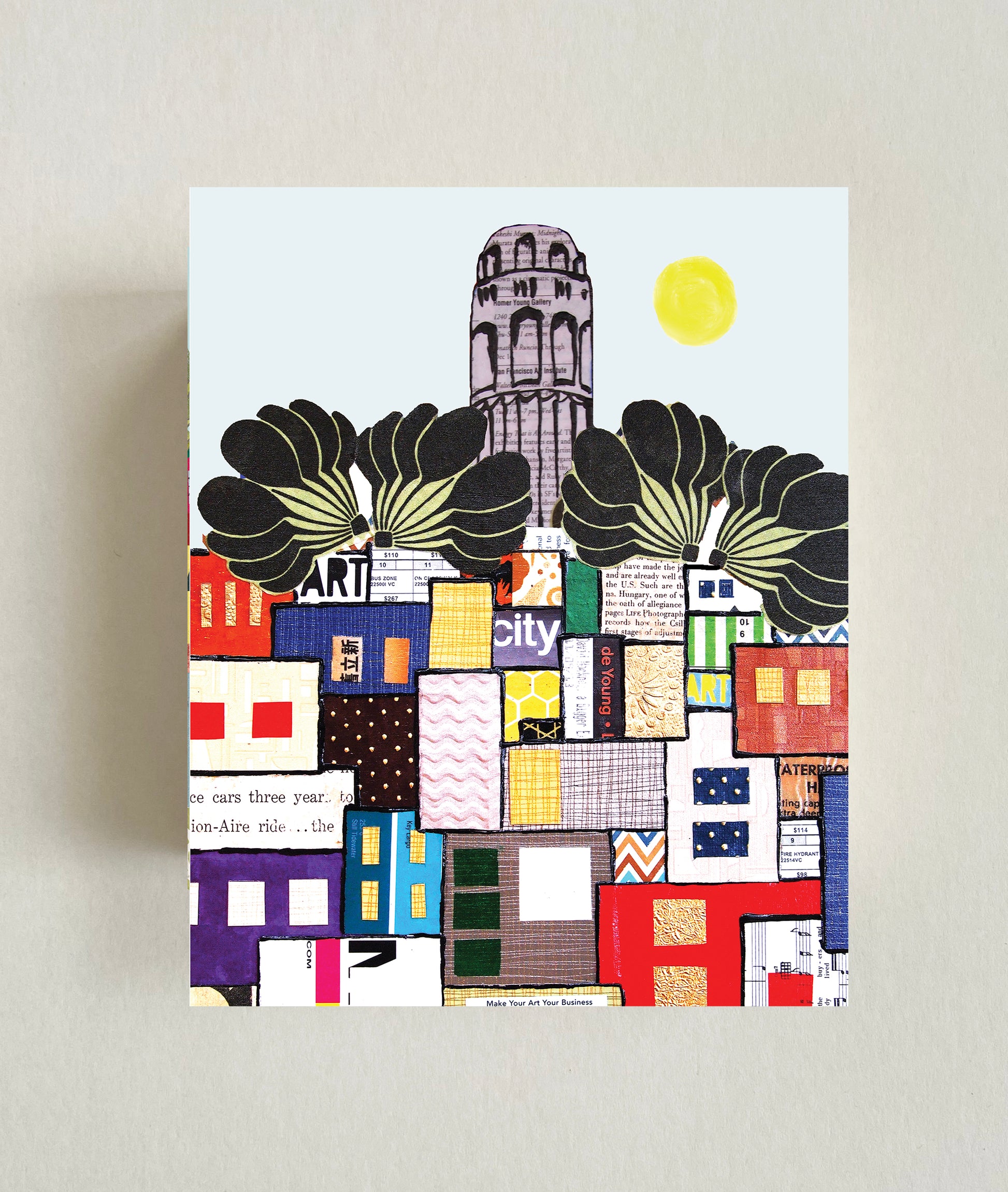 Perched atop Telegraph Hill, Coit Tower is one of San Francisco’s most beloved landmarks. Surrounded by gardens, parrots, and steep stairways, this piece captures its timeless charm and the sweeping views it offers of the city below — a beacon of art, history, and skyline beauty.